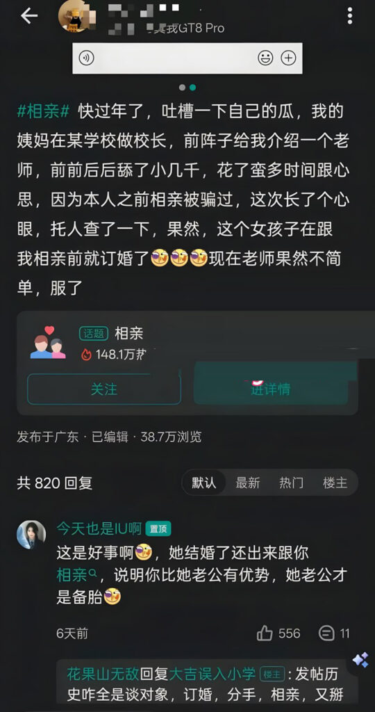 长沙市天心区小学老师昌瑾昀,被拆穿人设,顶级捞女的修养就是吃着碗里看着锅里的,已经订婚的她,竟然还在私底下相亲约会,苦主发现后曝光记录。